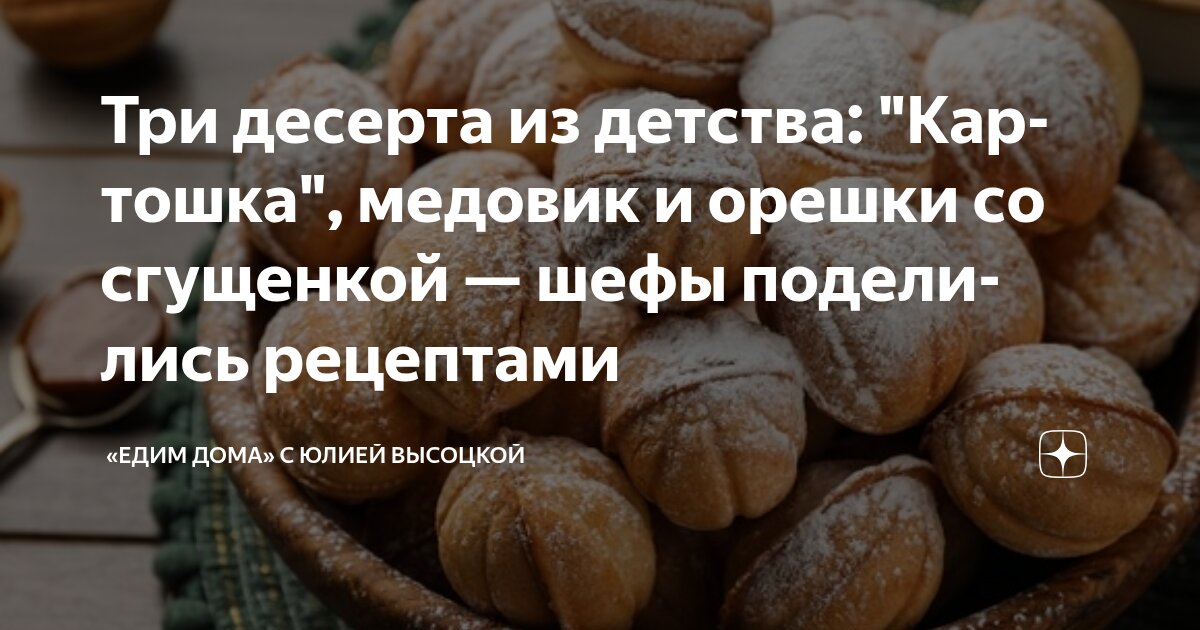 Три десерта из детства: "Картошка", медовик и орешки со сгущенкой — шефы поделились рецептами Статья автора ««Едим Дома» с Юлией Высоцкой» в Дзене ✍: Как приготовить пирожное "Картошка", медовик и орешки со сгущенкой дома?