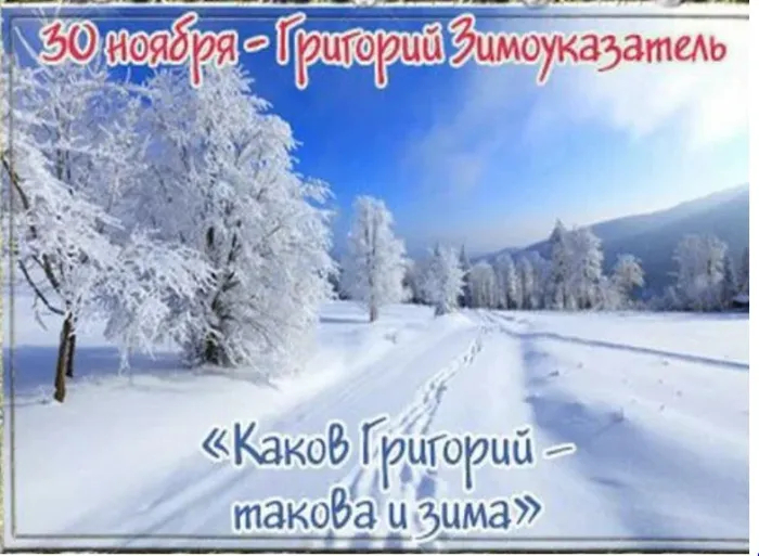 Григорий Зимоуказатель 30 ноября. Желаю большого счастья, крепкого здоровья и процветания в любом деле. Открытки на Григория Зимоуказателя.