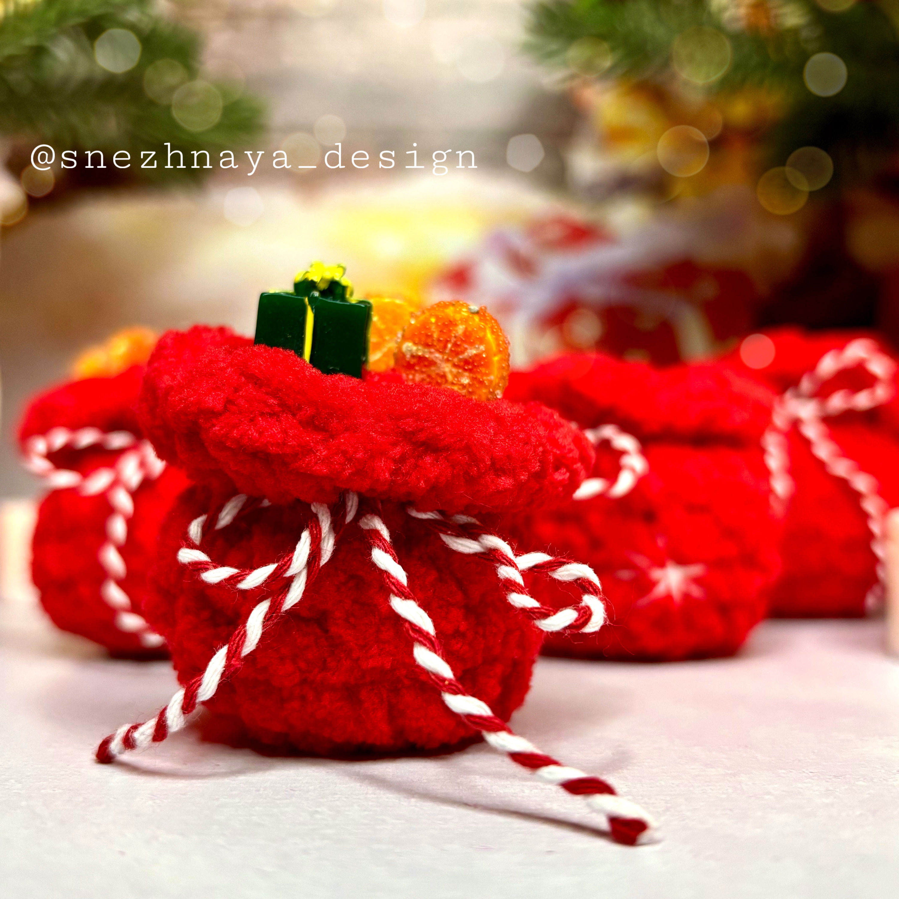 PDF Мешок подарков крючком. FREE crochet pattern; Аmigurumi toy patterns. Амигуруми схемы и описания на русском. Вязаные игрушки и поделки своими руками #amimore - плюшевый мешочек с подарками к Новому году, маленький мешок из плюшевой пряжи, Рождество, новогоднее украшение.