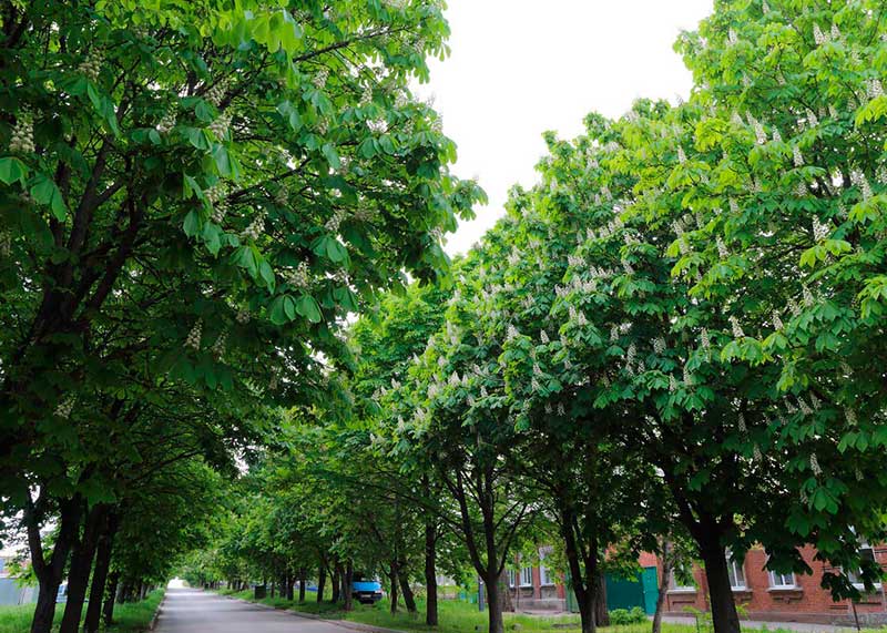 Лекарственное растение Конский каштан обыкновенный (Aesculus hippocastanum). Мощное дерево высотой 15-30 м с серо-коричневой корой, которая у взрослых деревьев отслаивается тонкими чешуйками. Дерево сильно разветвленное, крона высокая сводчатая. Листья длинночерешковые, пальчатые, 5-7-раздельные, листочки обратнояйцевидные, к основанию клиновидно сужающиеся, неравномерно-пильчатые, длиной до 25 см.