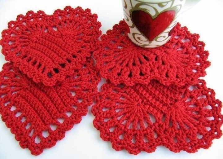 Knitted  heart coasters In the diagram a small heart