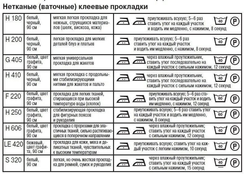 Таблица прокладок флизелин Сохраняйте себе, чтобы не потерять