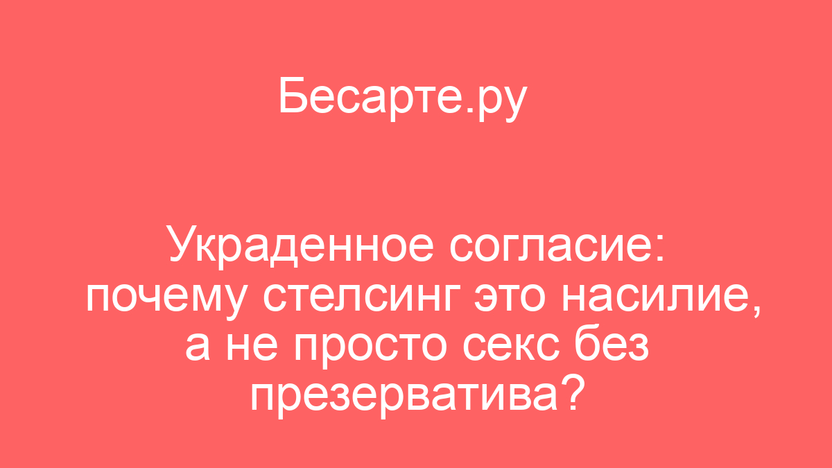 Украденное согласие: почему стелсинг это насилие, а не просто секс без презерватива?