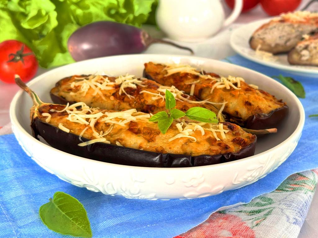 - Аппетитные, очень вкусные лодочки из баклажанов с фаршем достать из аэрогриля, переложить на тарелку и подать к столу. При подаче можно присыпать лодочки натёртым сыром или полить любимым соусом.