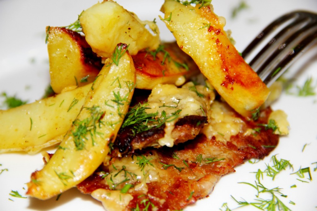 Картошка с мясом в майонезе с сыром в духовке