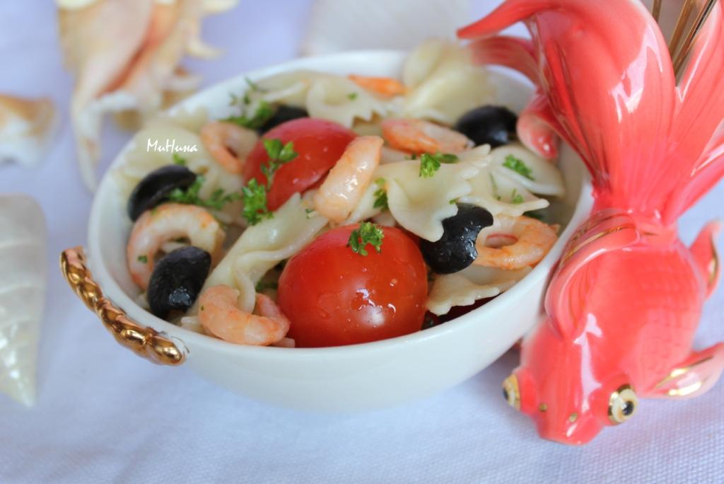 - С пастой "Фарфалле" блюдо смотрится очень симпатично.