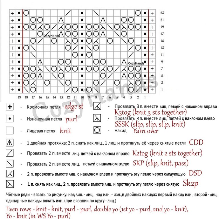 Узор спицами от CozyHands. Схема, описание, видео-мк