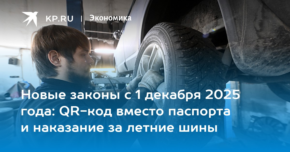 Новые законы с 1 декабря 2025 года: QR-код вместо паспорта и наказание за летние шины В России с 1 декабря 2025 года начал действовать ряд новых законов