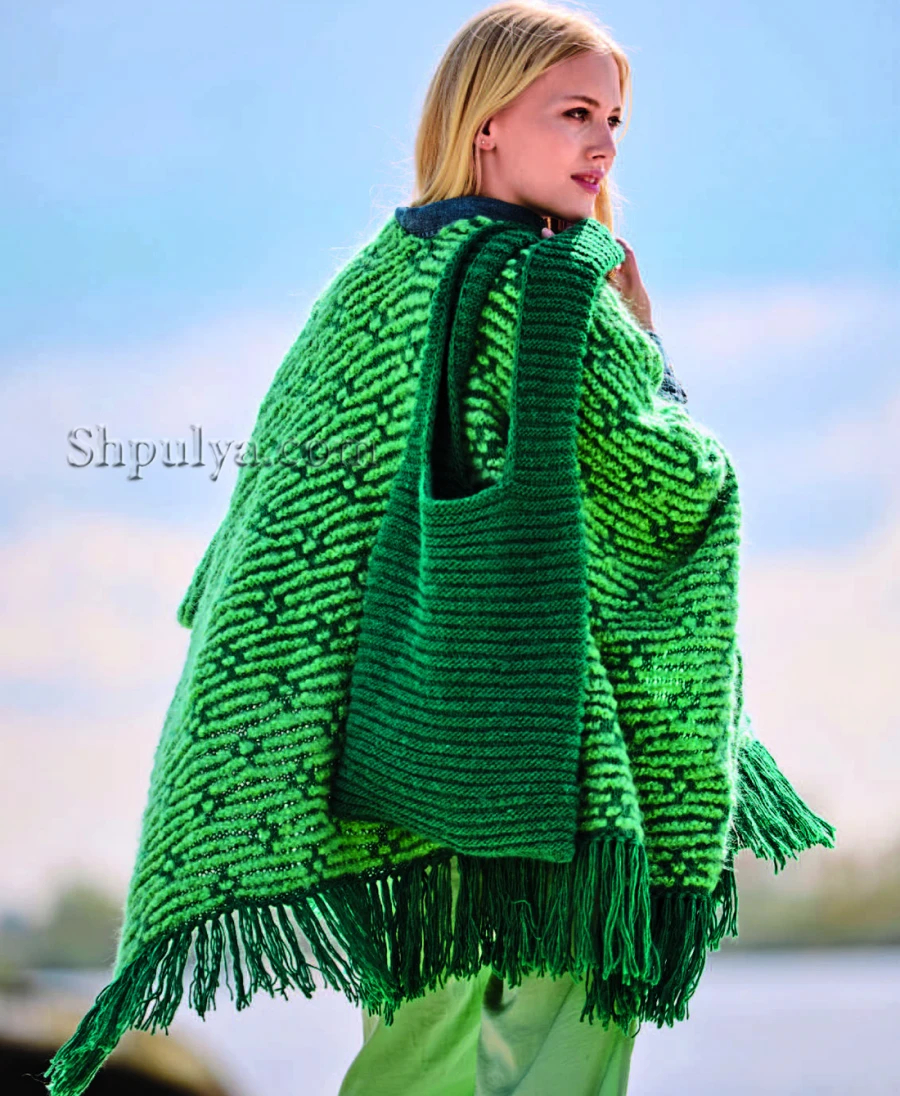 Пончо с бахромой и сумка-шопер — Shpulya.com - схемы с описанием для вязания спицами и крючком