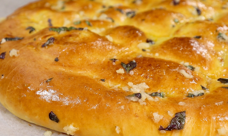 Большая пампушка с чесноком или лепёшка с начинкой – нежное тесто, не черствеет