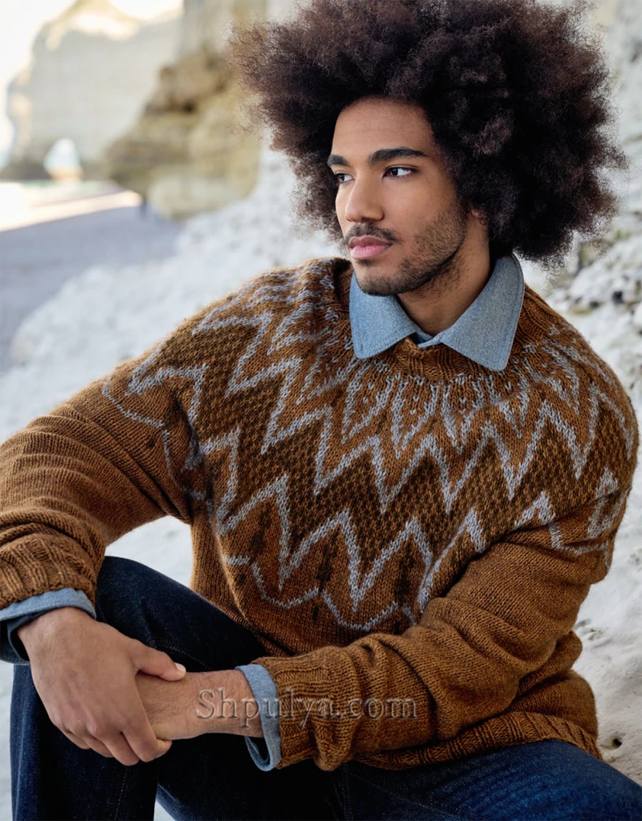Мужской пуловер с жаккардовой кокеткой — Shpulya.com - схемы с описанием для вязания спицами и крючком
