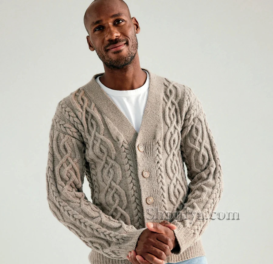 Вязаный мужской кардиган на пуговицах с арановыми узорами — Shpulya.com - схемы с описанием для вязания спицами и крючком