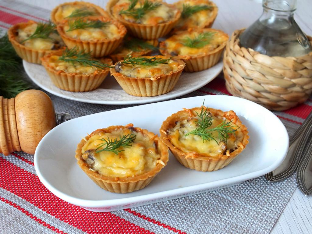 Грибной жульен в тарталетках Грибной жульен в тарталетках - это аппетитная горячая закуска, которая порадует ваших близких. Грибы обжариваются с луком и сметаной, а затем выкладываются в тарталетки и посыпаются сыром. Блюдо готовится быстро и просто, а тарталетки заменяют кокотницы, что делает его ещё более удобным.
