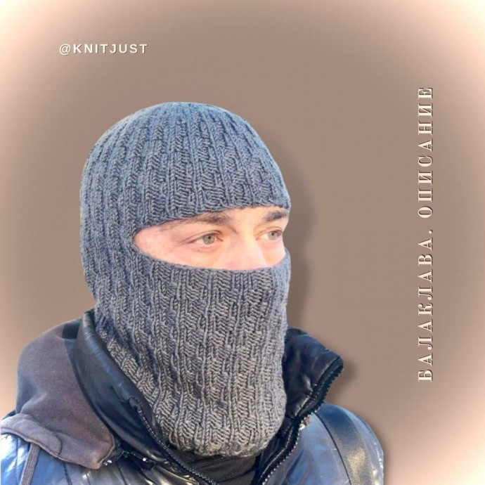 Балаклава для мужчин Размер 54 - 58 см⠀Вам потребуется:⠀пряжа метражом 90м/50г - 3 мотка⠀спицы 4,0 мм и 3,5 мм⠀1. Набрать 104п + 1п для замыкания в круг. Маркеромотметьте начало ряда (МНР).⠀2. Вяжем по кругу по схеме 7 раппортовв высоту.⠀3. Не довязывая до маркера 6п (на правойспице последние 3 лиц.п),...
