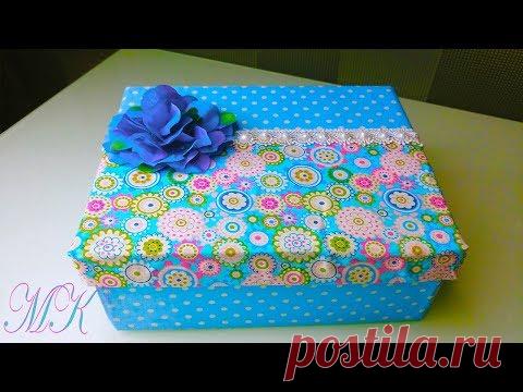 Декорирование обувной коробки. Как обтянуть коробку тканью. Box out of the box with their hands.