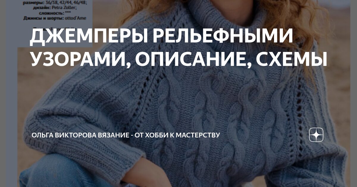ДЖЕМПЕРЫ РЕЛЬЕФНЫМИ УЗОРАМИ, ОПИСАНИЕ, СХЕМЫ Статья автора «Ольга Викторова Вязание - от хобби к мастерству» в Дзене ✍: 1. ДЖЕМПЕР С АРАНАМИ 2. ДЖЕМПЕР С ВОРОТНИКОМ-СТОЙКОЙ 3. ДЖЕМПЕР С ВОРОТНИКОМ "ПОЛО" 4.
