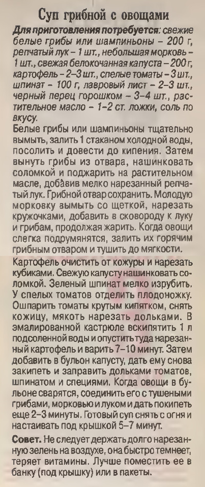 Суп грибной с овощами