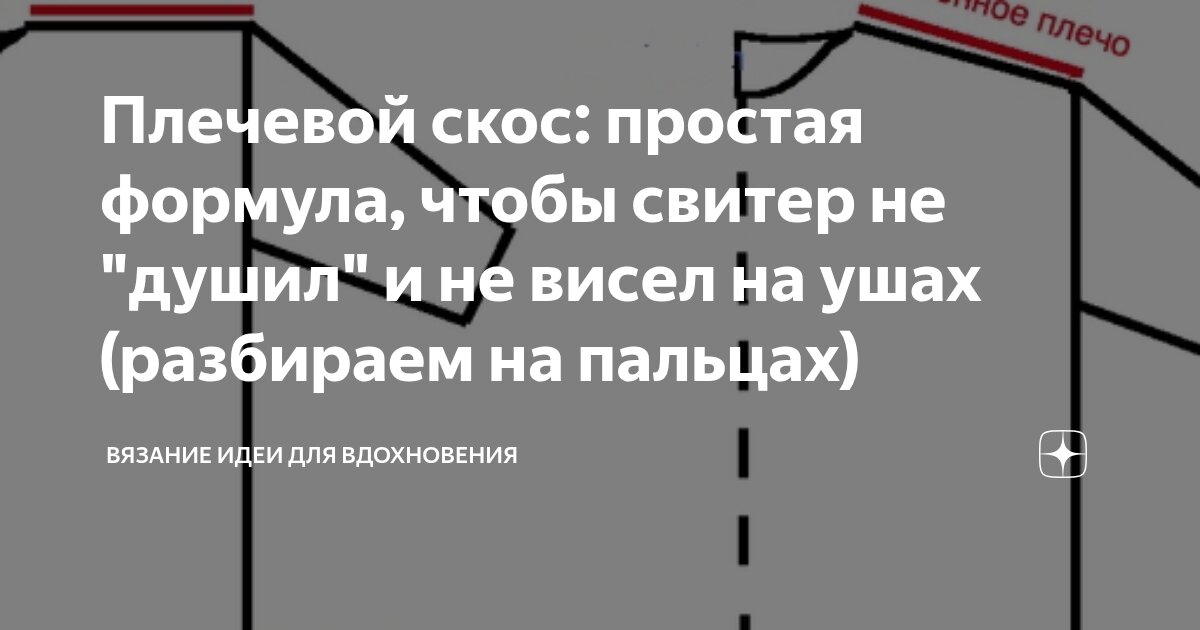 Плечевой скос: простая формула, чтобы свитер не "душил" и не висел на ушах (разбираем на пальцах) Статья автора «Вязание идеи для вдохновения» в Дзене ✍: Знакомая ситуация? Связали свитер-оверсайз, надели, а на плечах — 'погоны' из лишней ткани, которые торчат вверх.