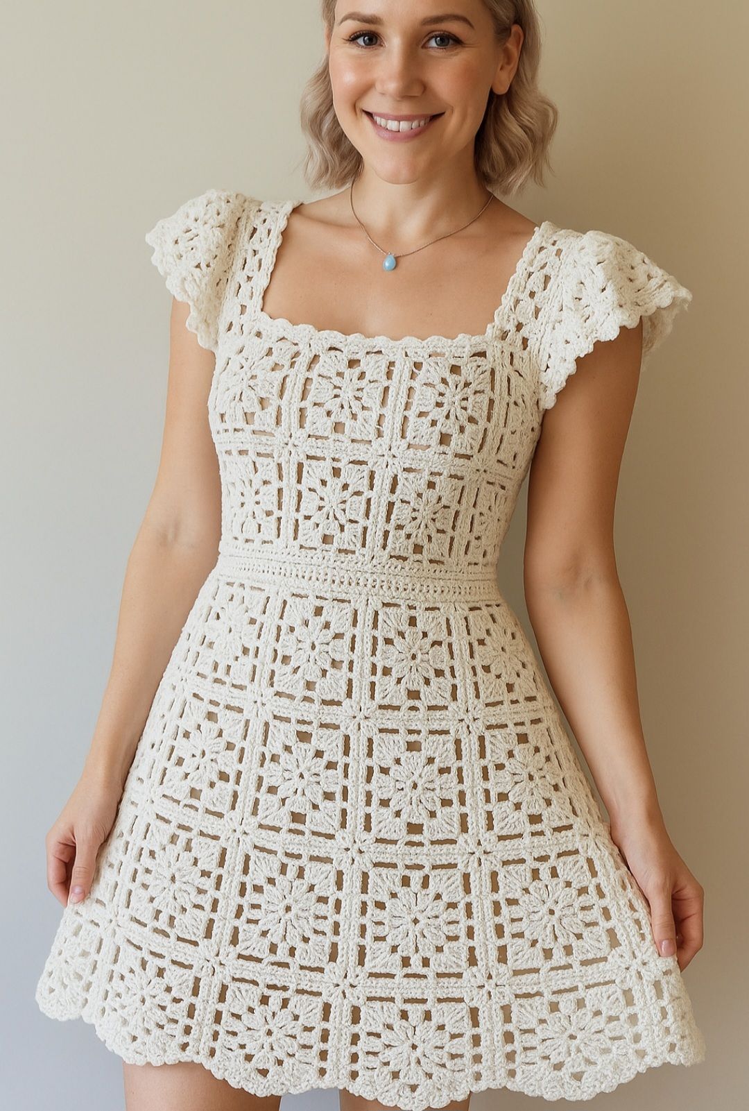 Платье из квадратных мотивов крючком