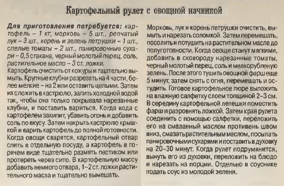 Картофельный рулет с овощной начинкой