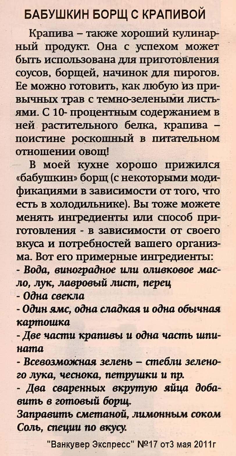 Бабушкин борщ с крапивой