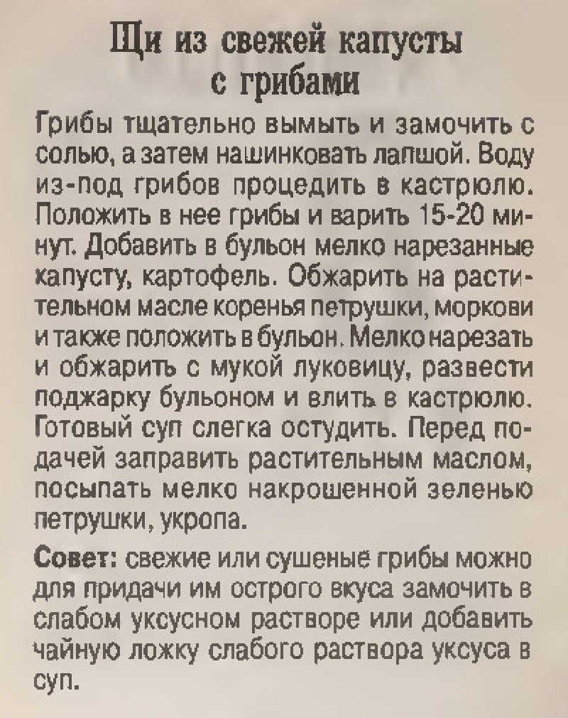 Щи из свежей капусты с грибами