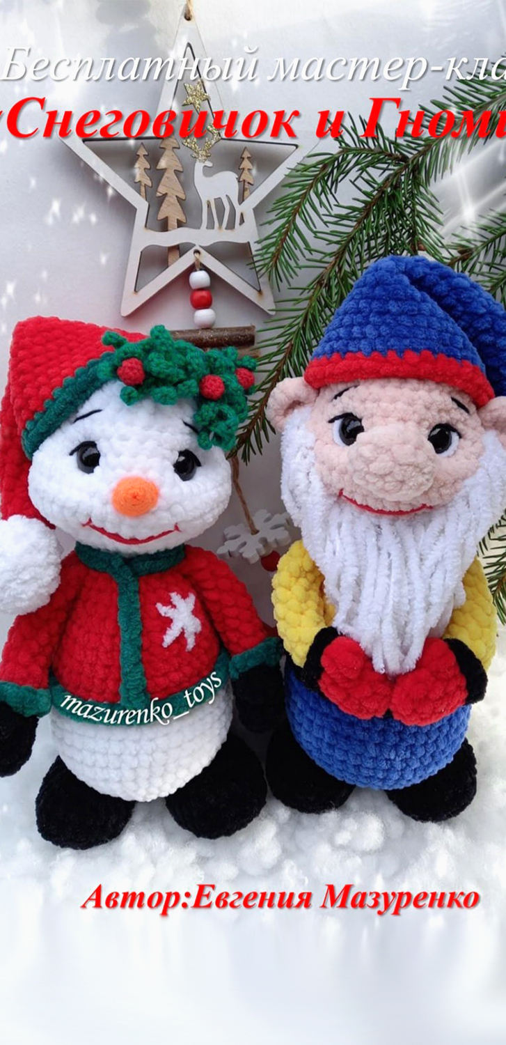 PDF Снеговичок и Гномик крючком. FREE crochet pattern; Аmigurumi doll patterns. Амигуруми схемы и описания на русском. Вязаные игрушки и поделки своими руками #amimore - плюшевый снеговик, Новый год, снеговичок и гном из плюшевой пряжи.