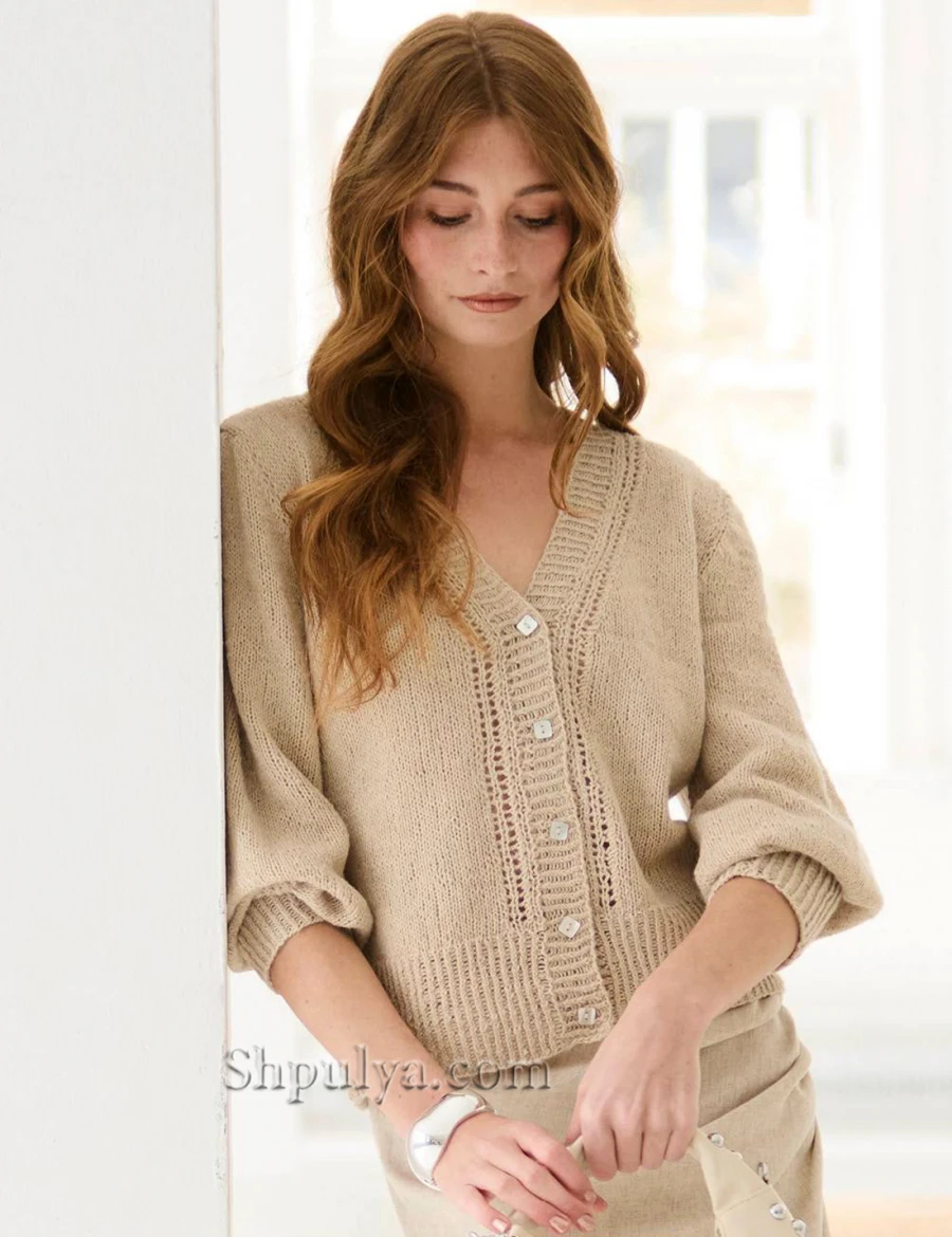 Бежевый кардиган с ажурными дорожками — Shpulya.com - схемы с описанием для вязания спицами и крючком