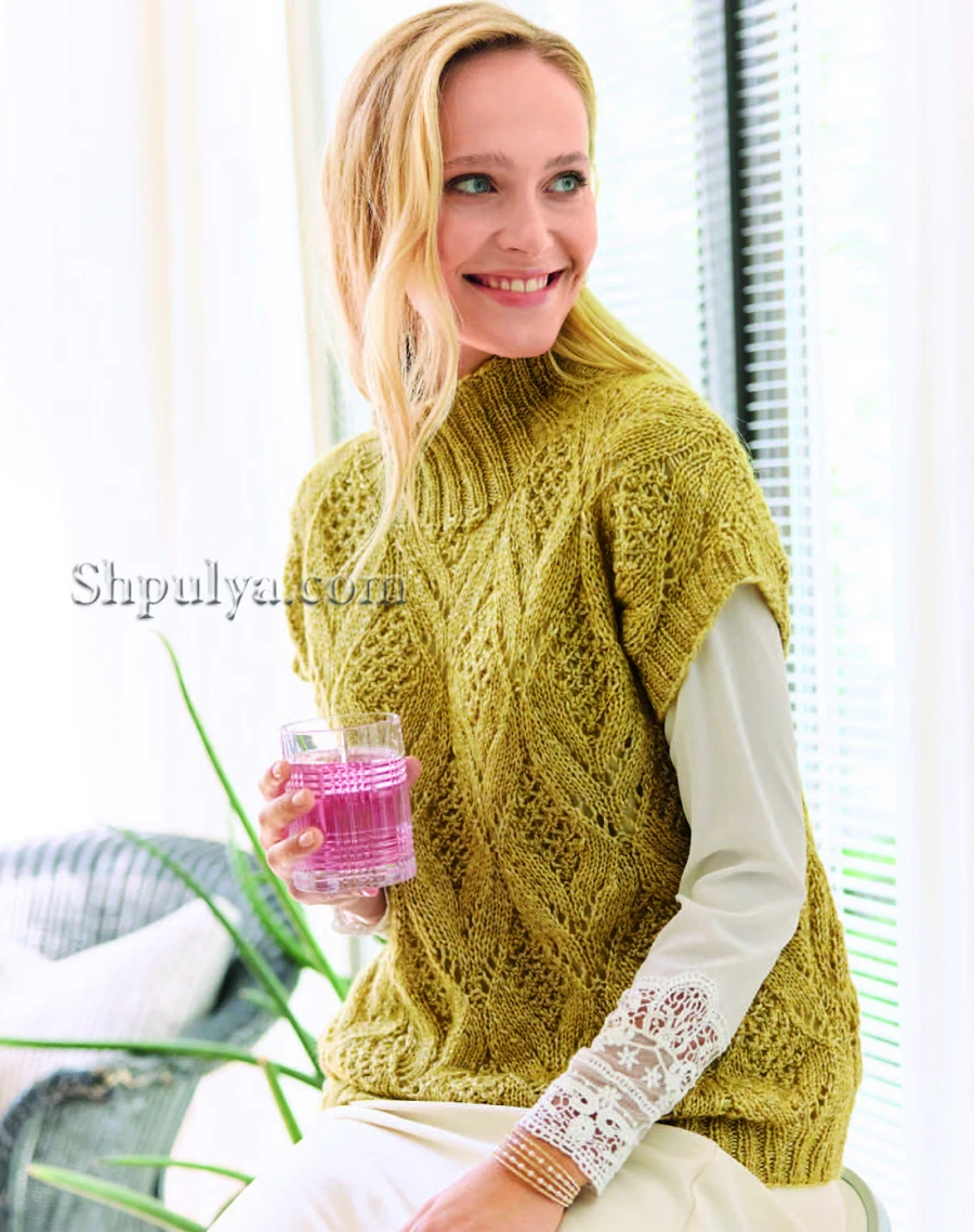 Жилет свободного силуэта ажурным узором — Shpulya.com - схемы с описанием для вязания спицами и крючком