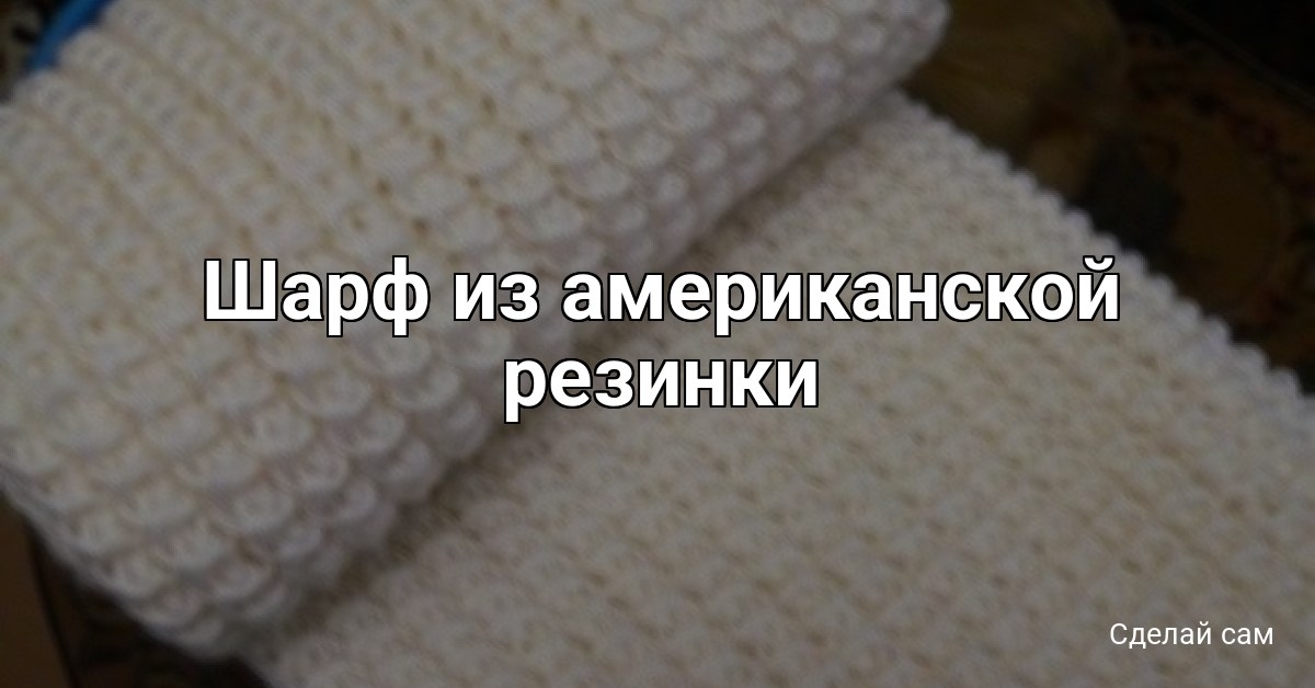 Шарф из американской резинки Шарф из американской резинкиРешила попробовать новый узор для шарфа – американскую резинку. Получается очень интересно, и, честно говоря, вяжется быстро .Для этого узора нужно набирать петли, кратные трём, плюс две кромочные. Я для образца набрала 26 петель.Вот как это вяжется:1-й ряд:...