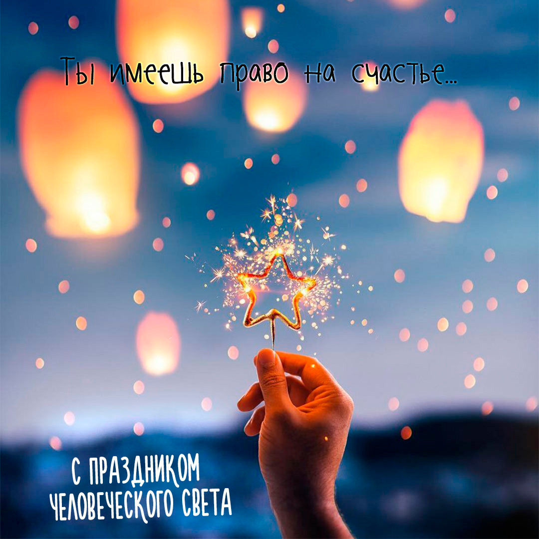 Поздравляю с праздником человеческого света! Желаю, чтобы в вашей душе всегда горел яркий огонь доброты, разума и сострадания, а жизнь была наполнена светом радости, тепла и истинного счастья! Открытки на Праздник человеческого света!