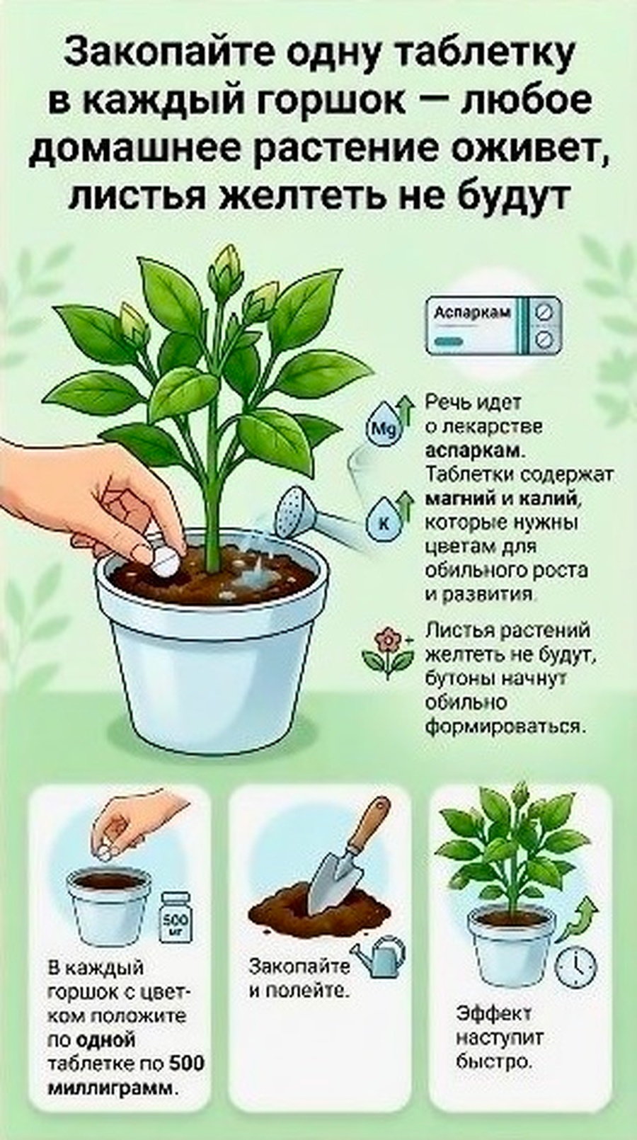 Закопайте одну таблетку в цветочный горшок - любое растение оживет