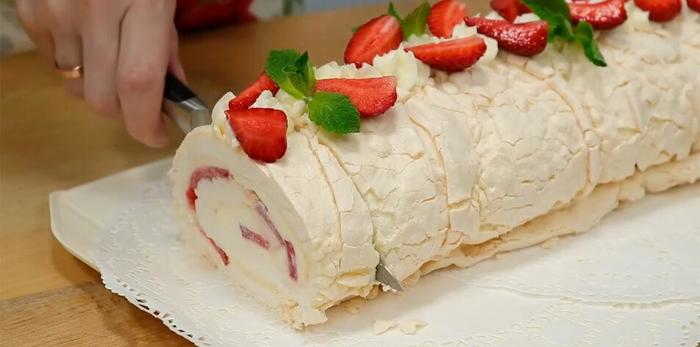 Меренговый рулет — хрустящая меренга встречается с нежнейшим кремом.