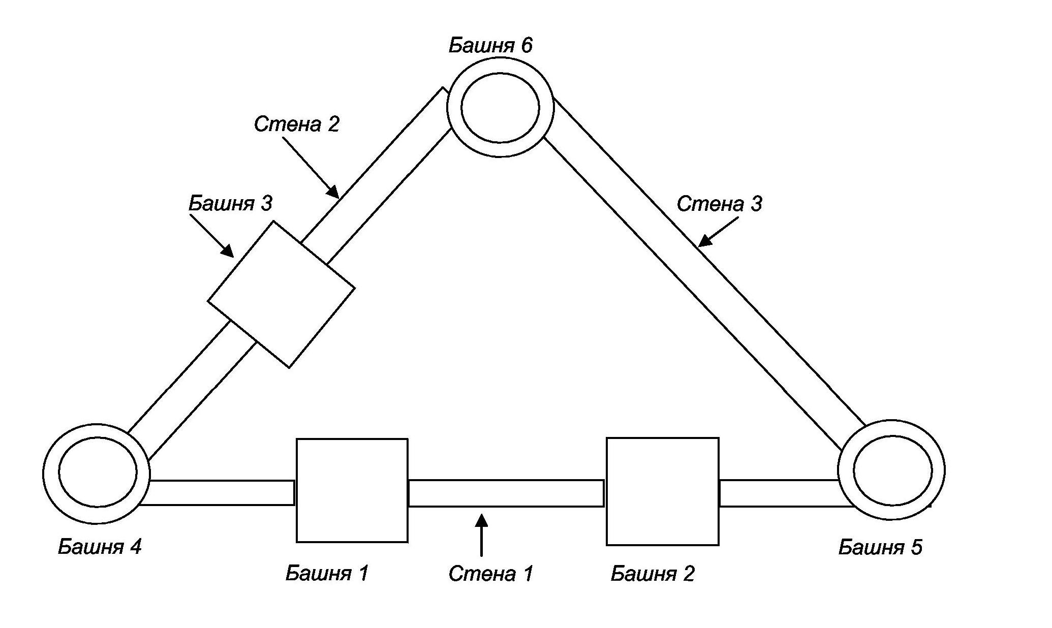 1 этап. РИСУЕМ СХЕМУ БУДУЩЕГО ЗАМКА Для начала нужно определить составляющие части будущего замка – количество стен и башен. Предлагаю схемы трех типов стен, которые можно комбинировать в любом количестве. Я решила для начала остановиться на трех стенах и шести башнях – трех круглых и трех квадратных. Начинать работу можно с любой стены.