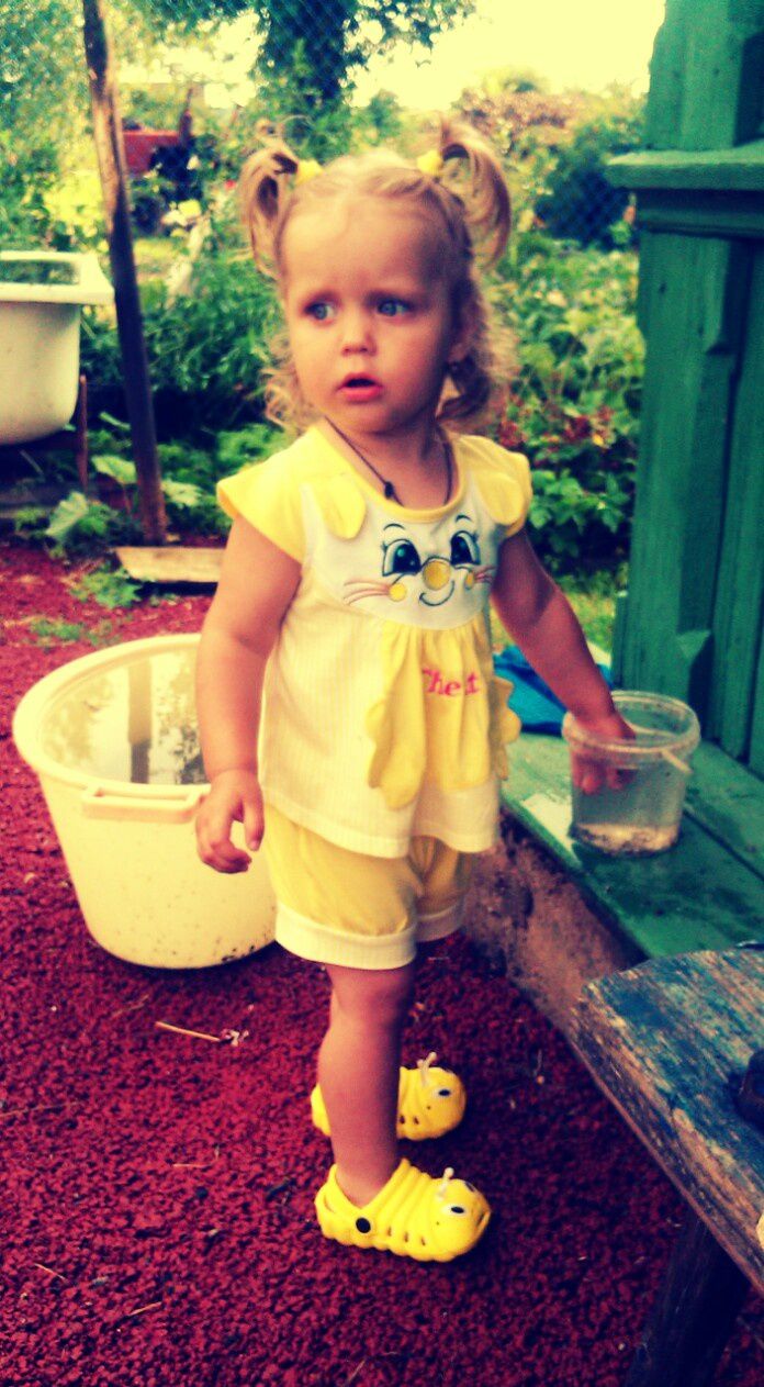 Нашей Эвелишке всего полтора годика, но не смотря на это, она уже помогает не только маме вытирать пыль, пылесосить и т.д., но и приезжая к бабуле, мыть посуду и варить вкусный обед. "… что на грядке уродится, что на дереве растет, все для дела пригодится и в обедик попадет!"