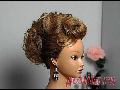 Elegant hairstyle for medium hair. Prom party updo. Элегантная для средних волос. - YouTube