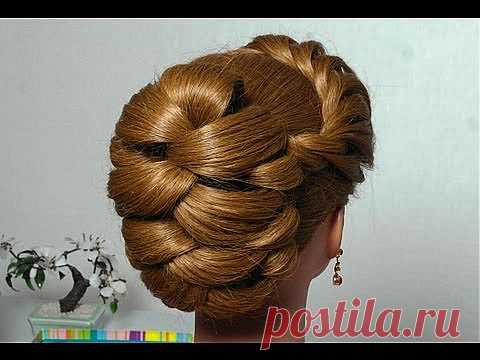 Вечерняя с плетением косы "жгут". Evening hairstyle for long hair with twist braid - YouTube