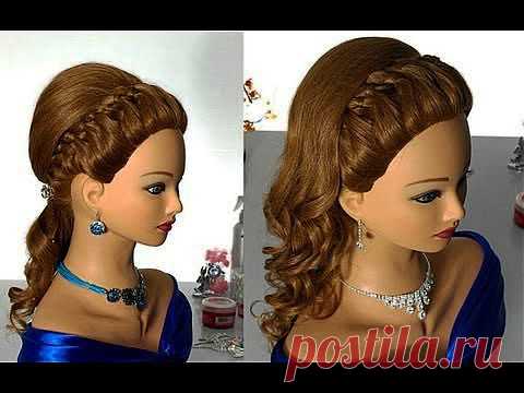 Вечерняя с плетением (коса из 4-х прядей). Prom hairstyle with 4 strand braid - YouTube