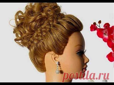 Вечерняя с плетением, прическа на выпускной. Wedding prom hairstyle for long hair - YouTube