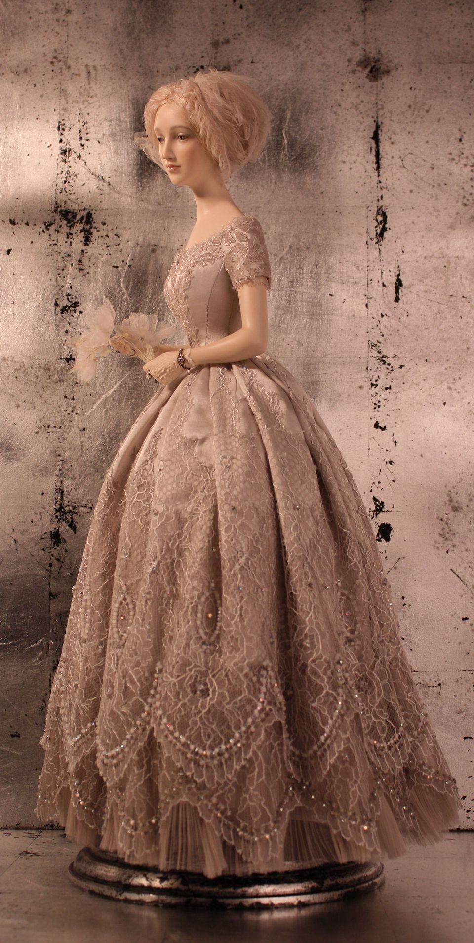 Фарфор бисквит. Натуральный шелковый атлас, газ, тончайшие кружева «шантильи».