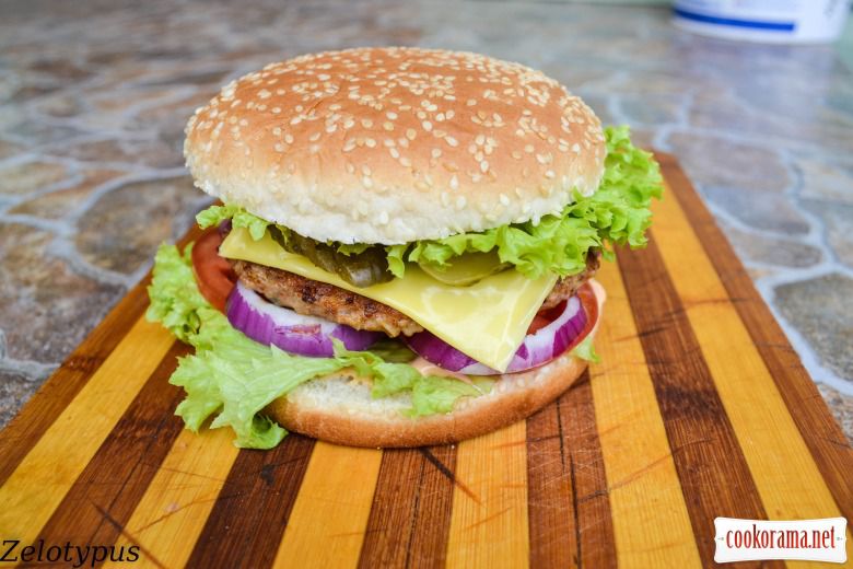 Гамбургер с куриной котлетой и острым соусом / Горячие закуски / Кукорама — вкусные рецепты!