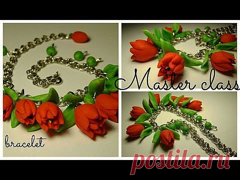 Браслет из полимерной глины- Тюльпаны1ч./Bracelet from polymer clay - YouTube