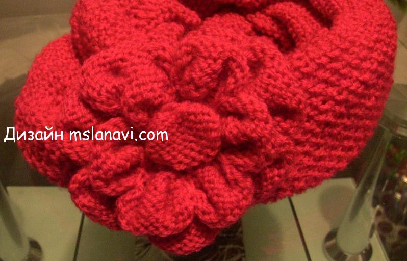 Красный вязаный снуд с цветком | Вяжем с Ланой