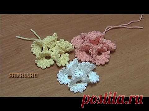 Вязание Цветов Урок 13 Как связать Цветочек лепестки которого выполнены из столбиков с пико - YouTube