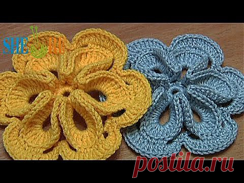 Цветок связанный крючком Урок 30 Как связать объемный цветок - YouTube