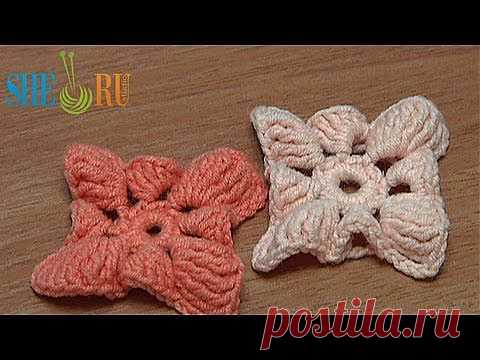 Вязание цветка Урок 37 Вязаный цветок с четырьмя короткими и четырьмя длинными лепестками - YouTube
