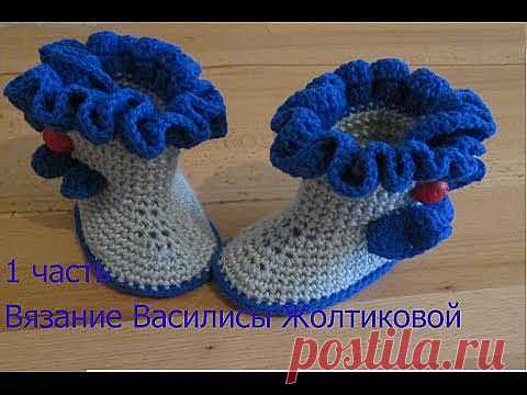 Пинетки крючком. Пинетки сапожки с рюшами. 1 часть. Crochet booties. - YouTube