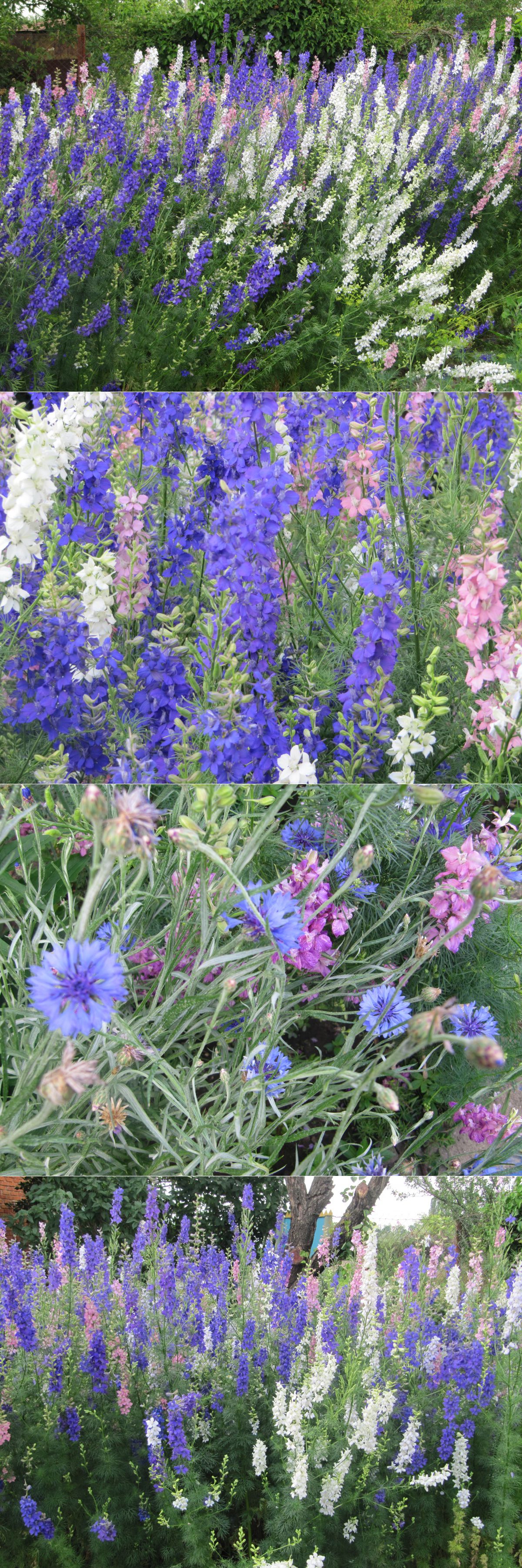 Волны дельфиниума.Цветет дельфиниум, глаз не оторвать. При даже небольших порывах ветра образуются разноцветные волны цветов. Приятно, сидя в кресле, попивая чай со свежим клубничным вареньем, наблюдать за игрой цветов, получая удовольствие от миросозерцания, и ощущать себя единым с природой.
