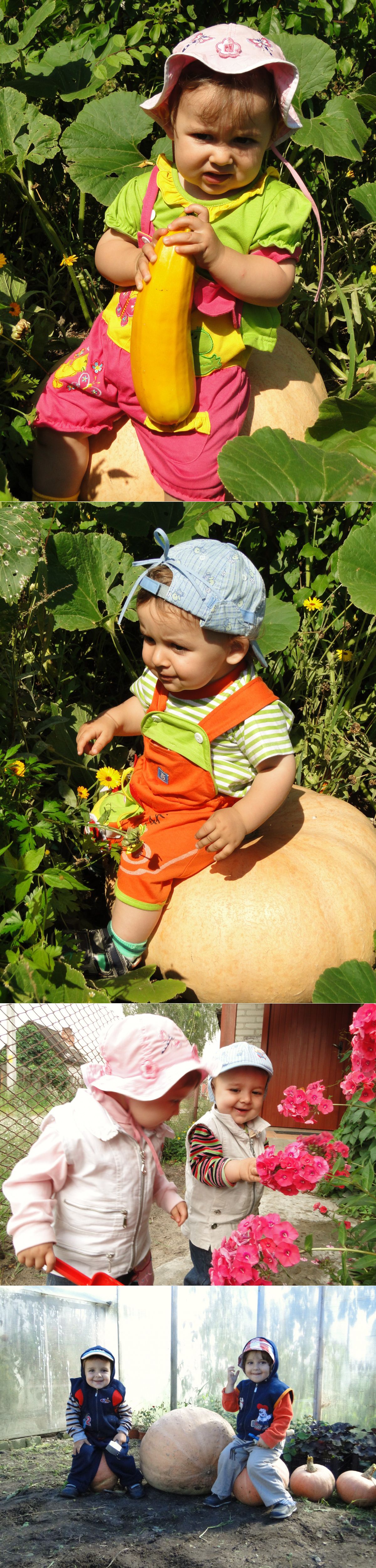 Двойняшки-огородники.Нас зовут Илья и Саша, нам скоро три года и мы очень любим помогать бабушке и дедушке на огороде! Самое интересное — собирать урожай.