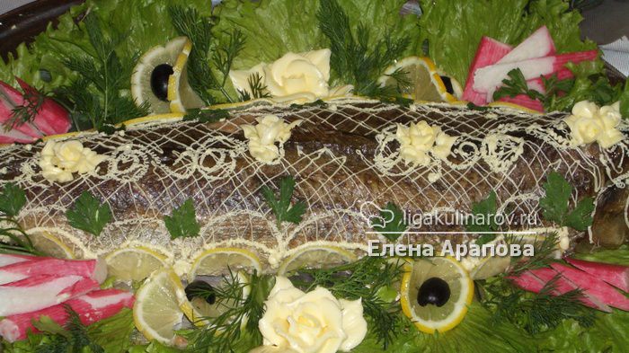 Рыба запеченная на подушке из квашеной капусты "Северянка", пошаговый рецепт от Лиги Кулинаров.